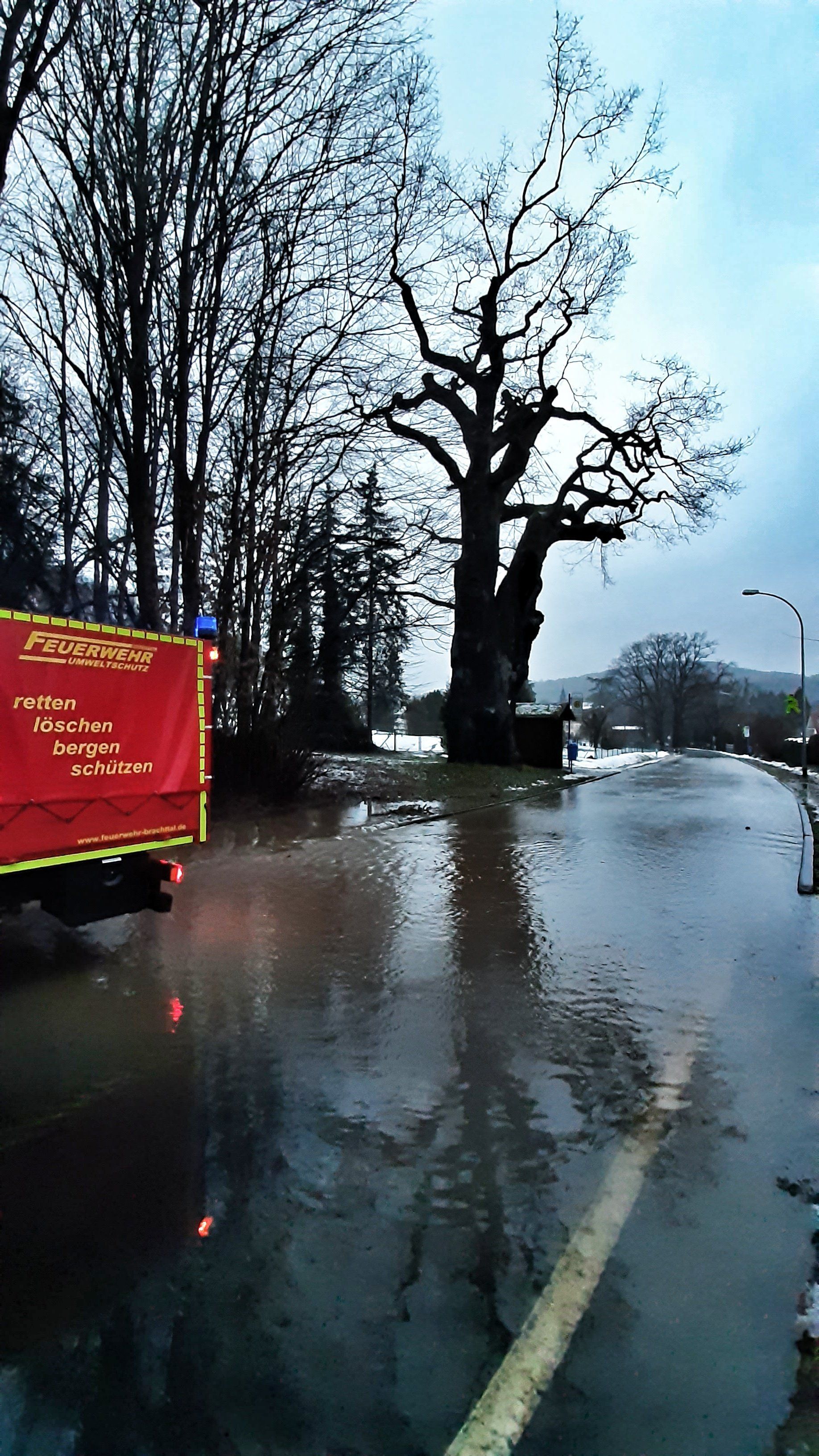 Anhaltender Starkregen und einsetzendes Tauwetter sorgten bereits in den frühen Morgenstunden des Freitags, 29. Januar 2021 zu ersten Einsätzen der Feuerwehren Schlierbach und Neuenschmidten. Gegen 08:30 Uhr entschloss sich die Leitung der Feuerwehr Vollalarm für die Feuerwehr Brachttal zu geben und im Feuerwehrhaus Schlierbach die Technische Einsatzleitung zu installieren. Die enormen Wassermassen, die von den Oberläufen der Bracht, des Reichenbachs und des Sotzbachs in Richtung Brachttal unterwegs waren, wurden durch das Oberflächenwasser aus den heimischen Wäldern noch weiter verstärkt, so dass bereits am frühen Vormittag die drei Bäche zu Flüssen anschwollen und über ihre Ufer traten. Hiervon waren insbesondere die Ortsmitten der drei Talortsteile Hellstein, Neuenschmidten und Schlierbach stark betroffen. Schlimm erwischt hatte es auch den Ortsteil Streitberg. Zahlreiche Keller liefen über den Tag hinweg voll und Straßen wurden überflutet. In Hellstein waren anfänglich bereits zwei Pferde auf einer unter Wasser stehenden Koppel eingeschlossen. In Schlierbach mussten mehrere Hunde auf einem Aussiedlerhof mit Hilfe eines geländegängigen LKW vor den Wassermassen gerettet werden. Zwischendurch alarmierte die Leitstelle noch die Voraushelfergruppe der Feuerwehr Brachttal zu einem internistischen Notfall in den Ortsteil Schlierbach. Unterstützung erfuhren die Brachttaler Einsatzkräfte unter anderem von der Feuerwehr Wächtersbach, die mit Ihrem Gerätewagen-Nachschub Sandsäcke brachten, der Feuerwehr Aufenau, die mit dem Abrollbehälter-Starkregen des Katastrophenschutz mehrere Pumpen lieferten und aus dem Gefahrenabwehrzentrum des Main-Kinzig-Kreises. Von dort wurden ebenfalls mit eine Wechselladerfahrzeug und dem Abrollbehälter-Sandsack einige hundert Sandsäcke angeliefert. Neben den Einsatzkräften der Feuerwehr engagierten sich darüber hinaus zahlreiche Brachttaler Bürgerinnen und Bürgern in den jeweiligen Ortsteilen und am Bauhof beim Befüllen frischer Sandsäcke – an dieser Stelle ein ganz herzliches Dankeschön für die tolle Unterstützung und auch die bereitgestellte Verpflegung für die Helfer. Der Einsatz der Feuerwehr Brachttal endete an diesem Tag gegen 22:00 Uhr.