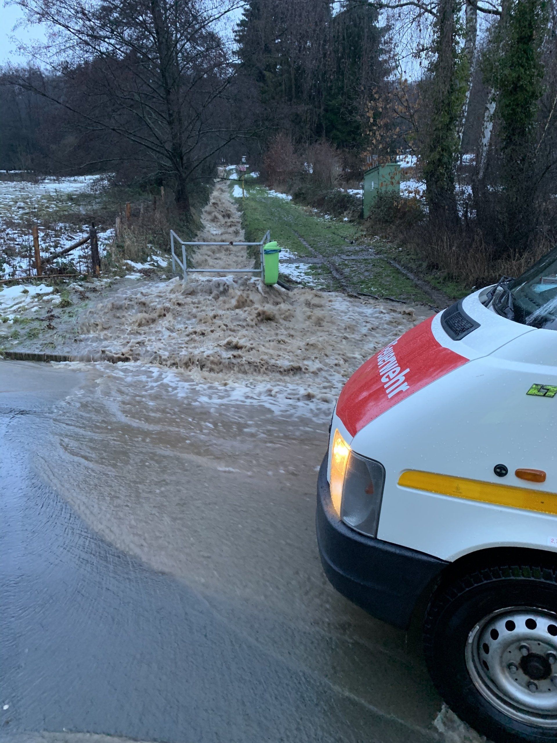 Nach zwei Tagen des Verschnaufens und der Wiederherstellung der vollständigen Einsatzbereitschaft führten erneute Regenfälle am Mittwoch, 03. Februar 2021 zum wiederholten Anstieg der Pegel und zum unkontrollierten Ablauf von Oberflächenwasser aus den Wäldern rund um Brachttal. Ab etwa 14:20 Uhr bis in die Abendstunden waren in Brachttal die Feuerwehren Hellstein, Schlierbach, Neuenschmidten und Udenhain wieder mit verschiedenen Maßnahmen im Einsatz tätig. In der Nacht erreichten dann auch einige Pegel-Messstellen die Marken vom 29. Januar 2021, allerdings konnte das Wasser diesmal weitestgehend kontrolliert ablaufen. Nur an einigen Stellen außerhalb der Ortslagen traten die Bäche wieder über die Ufer.