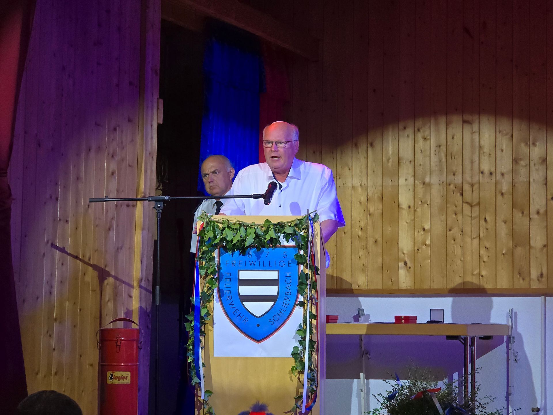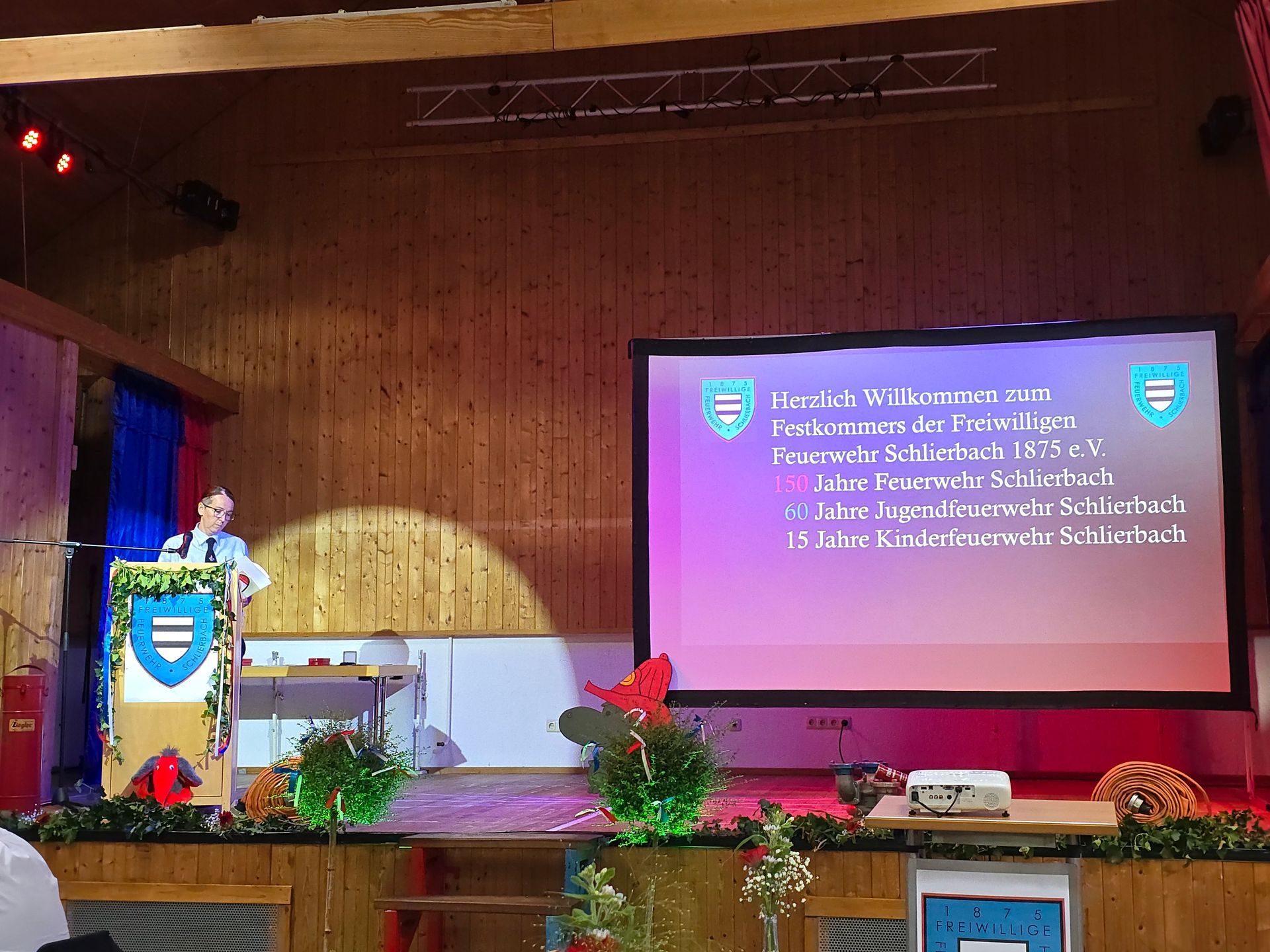 Am Freitag, den 27.06.2025 fand der Kommersabend zu den Gründungsjubiliäen der Feuerwehr Schlierbach, der Jugendfeuerwehr Schlierbach und der Kinderfeuerwehr Schlierbach statt. Neben zahlreichen Gästen der benachbarten und befreundeten Feuerwehren sowie unserer Partnerwehr aus Gamsen, reihten sich auch Kreistagsvorsitzender und Kreisbrandmeister Carsten Ullrich, Bürgermeister Wolfram Zimmer, Gemeindevertretervorsitzender Enrico Detzer, Gemeindebrandinspektor Maximilian Kröll, Ehrengemeindebrandinspektor Alexander Grieb und der Vorsitzende des Unterverbandes Gelnhausen im Kreisfeuerwehrverband Main-Kinzig Ralf Seipel in die Gästeliste zur Feierstunde ein.
