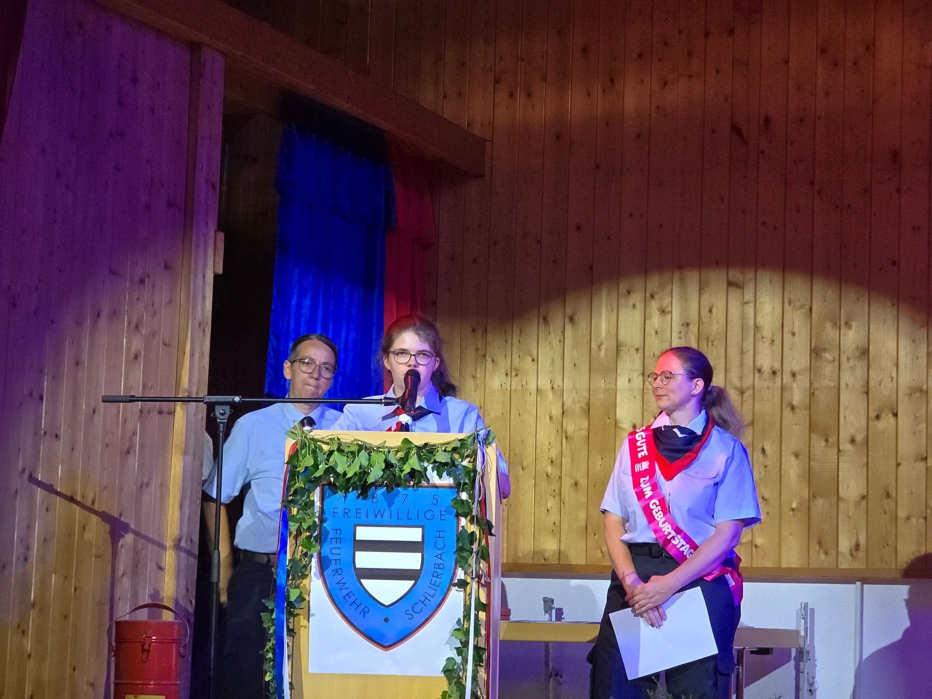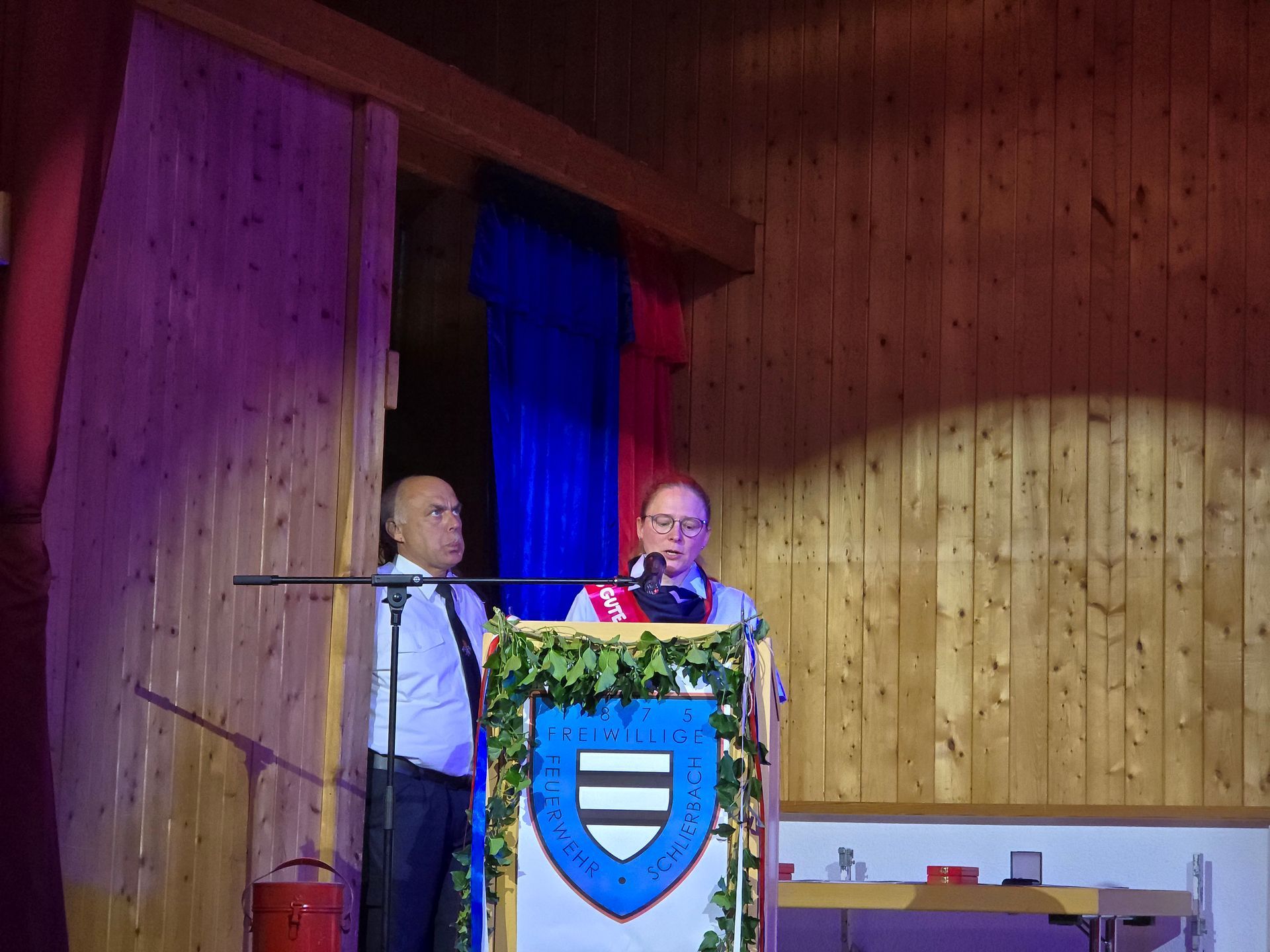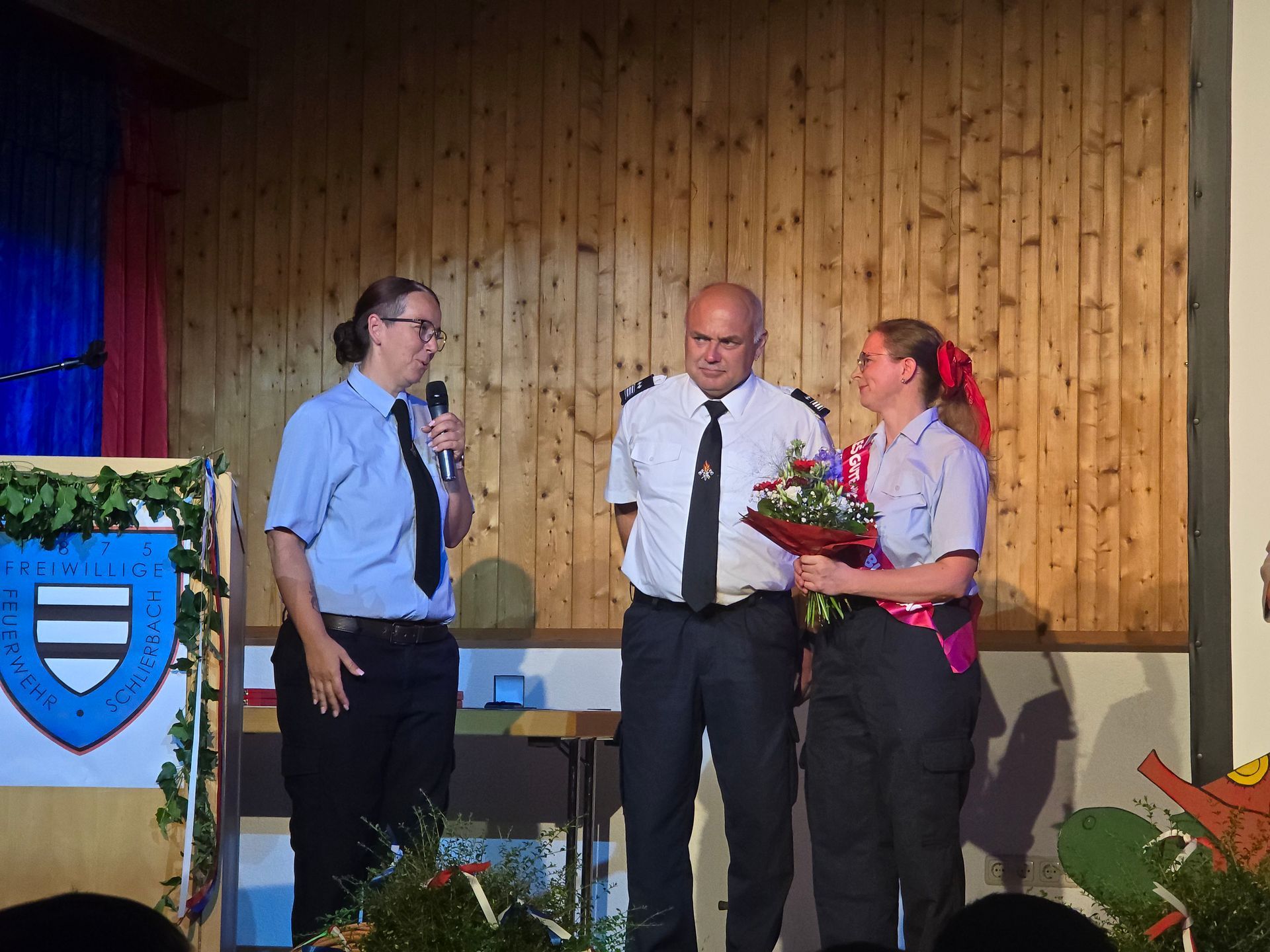 Vereinsvorsitzende Jessica Riemenschneider und Wehrführer Ralf Löffler begrüßten die anwesenden Gäste und führten sie durch das Programm des Festabends. Anschließend verlies die Vereinsvorsitzende Jessica Riemenschneider die Chronik der Freiwilligen Feuerwehr Schlierbach. Aufgelockert wurde die Veranstaltung durch eine Musikeinlage von Michelle Kreuzer-Krollius. Im Anschluss verlas Jugendfeuerwehrwartin und Gemeindejugendfeuerwehrwartin Carina Volz anlässlich des 60-jährigen Jubiläums aus dem Vorjahr die Chronik der Jugendfeuerwehr Schlierbach. Auf eine erneute Musikeinlage von Michelle Kreuzer-Krollius folgte anlässlich des 15-jährigen Jubiläums der Kinderfeuerwehr Julia Bahr, Kinderfeuerwehrwartin, mit der Verlesung der Chronik der Kinderfeuerwehr Schlierbach.
